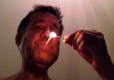 Lighting a candy cigarette